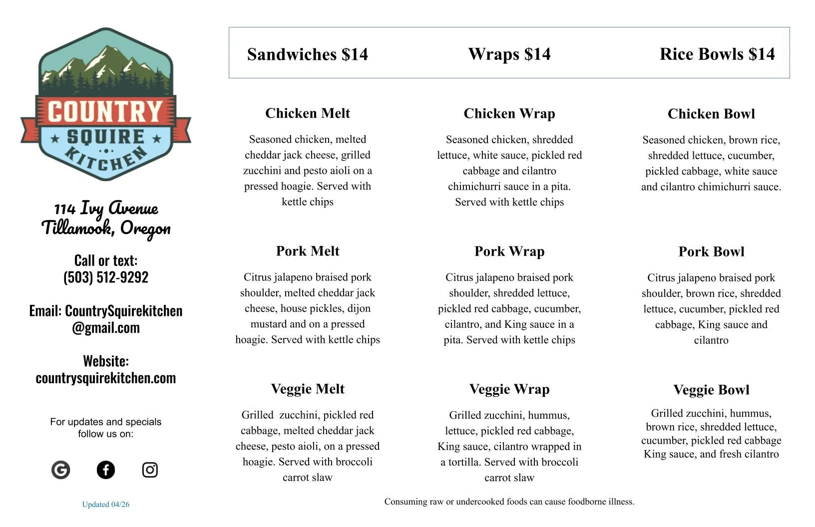 Click here to Check our Daily Specials